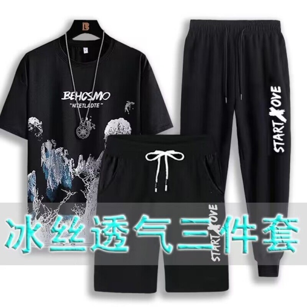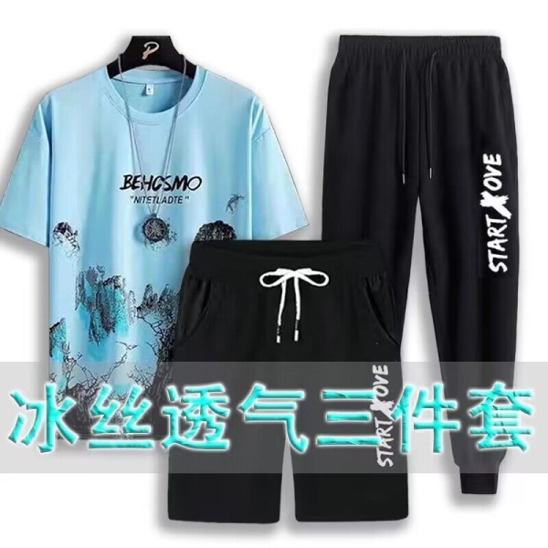青年速干运动短裤三件套潮流短袖t恤夏季男士休闲薄款学生套装