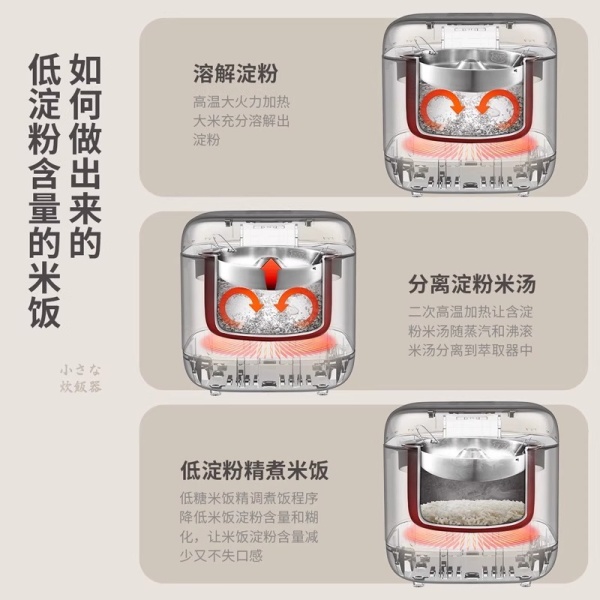 商品属性 [3C证书编号] 2022010718448494 [上市时间] 2021-09 [产品尺寸] 230*210*210mm [内胆材质] 陶瓷釉 [刻度标示] 内壁标示 [功率] 800W以下 [功能] 蛋糕,定时,预约,低糖煮饭,其他 [加热方式] 底盘加热 [包装清单] 饭煲*1锅胆*1米汤萃取器*1饭勺*1量杯*1电源线*1说明书*1 [售后服务] 质保一年 [型号] HRC0A001(R) [容量] 3L以下 [控制方式] 微电脑式 [操作方式] 触摸式 [是否有保温功能] 是 [是否跨境出口专供货源] 否 [智能类型] 不支持智能 [机身材质] 铝合金 [液晶显示] 有 [能效等级] 3级 [适用人数] 2-3人 [面板类型] 黑色微晶面板 [预约功能] 有 [额定功率] 400W [额定电压] 220 [额定频率] 50Hz