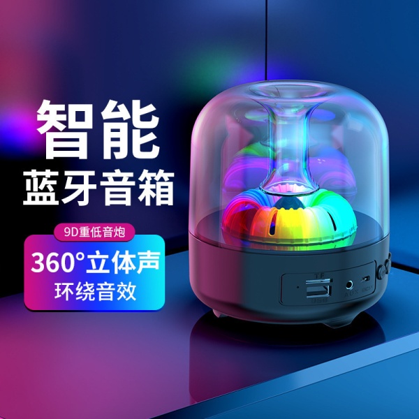 蓝牙音箱家用新款桌面无线耳机琉璃低音炮七彩音响环绕透明小