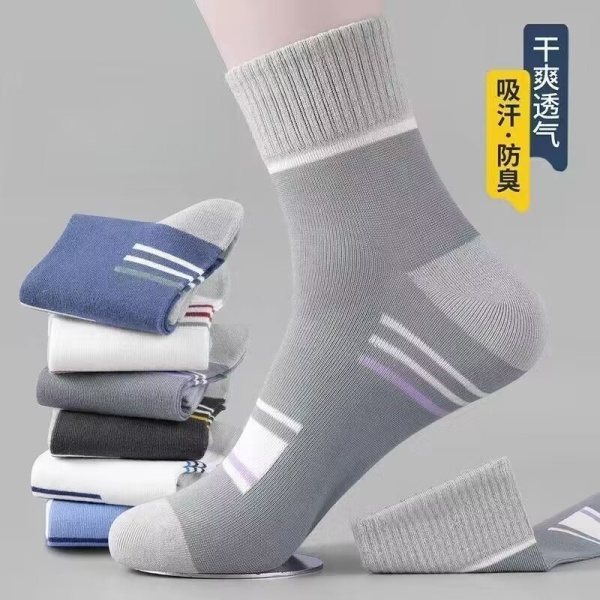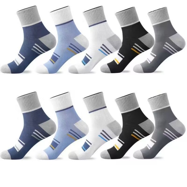 商品属性 [上市年份/季节] 2025年秋季 [上市时间] 2025年秋季 [主面料成分] 聚酯纤维(涤纶) [主面料成分含量] 50%(含)-70%(不含) [产品类别] 普通休闲袜 [产地] 浙江 [功能] 吸汗,防摩擦 [图案] 拼色 [成分及含量] 1 [无骨缝制] 是:手工无骨缝头 [是否跨境出口专供货源] 否 [是否进口] 否 [筒高] 中筒 [织造方法] 单针 [适合季节] 夏季,冬季,春季,秋季 [适用年龄段] 青年(18-40周岁),中年(40-60周岁),少年(13-18周岁) [适用性别] 男 [针数] 144N [面料名称] 混纺 [风格] 休闲