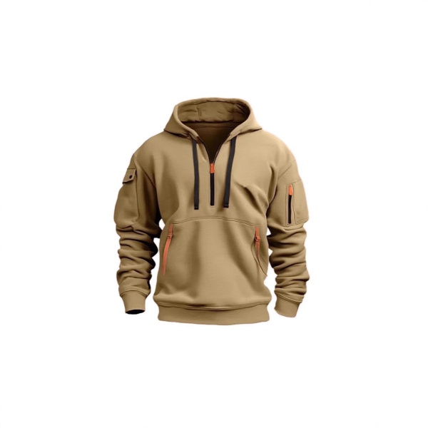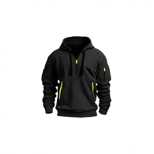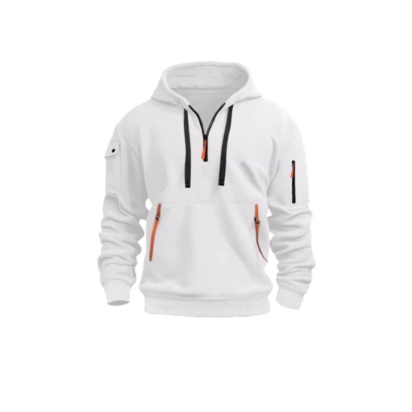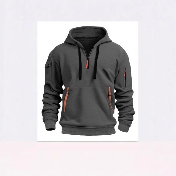 跨境美式爆款春秋男士卫衣连帽拉链多口袋飘带套头衫男士运动外套