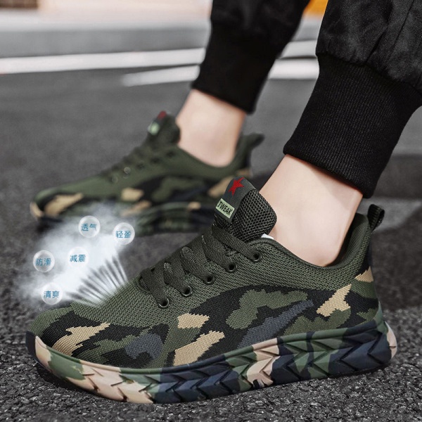 2024春季迷彩休闲鞋子男飞织跑步透气鞋青少年软底轻便防滑运动鞋