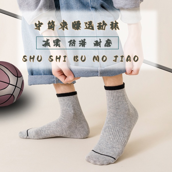 四季款男士中筒棉袜吸汗透气舒适运动袜跑步跳绳户外训练袜子批发