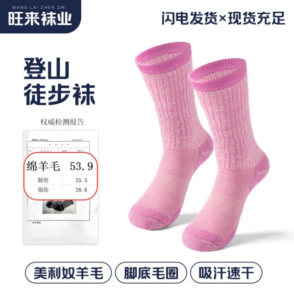 美利奴羊毛袜加厚保暖中筒袜防滑防臭毛圈袜子户外运动登山滑雪袜