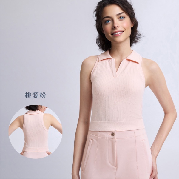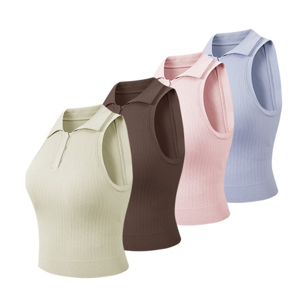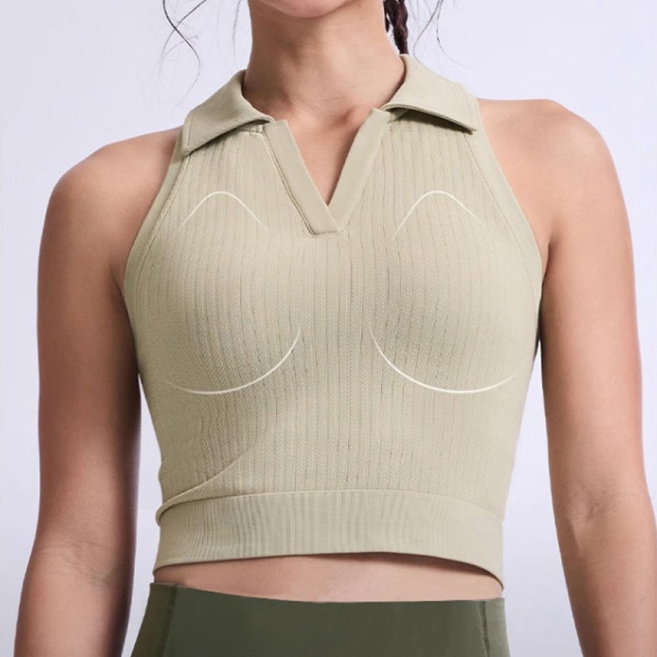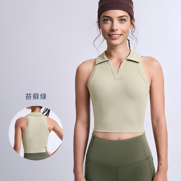 跨境新品纯色翻领运动背心女春夏健身上衣专业跑步户外运动内衣