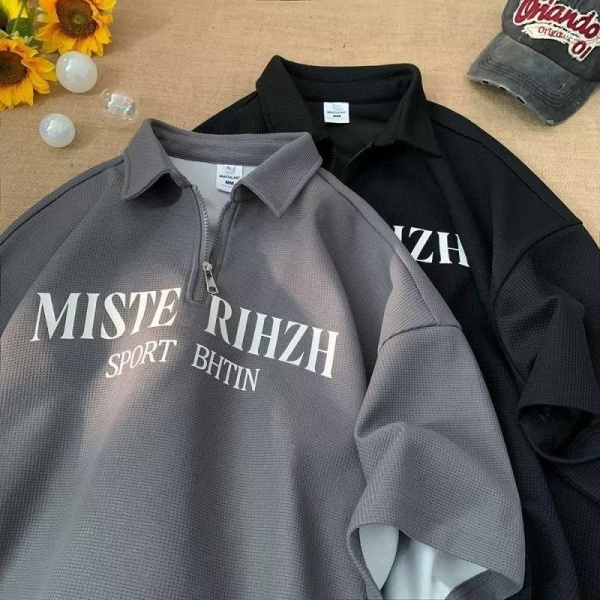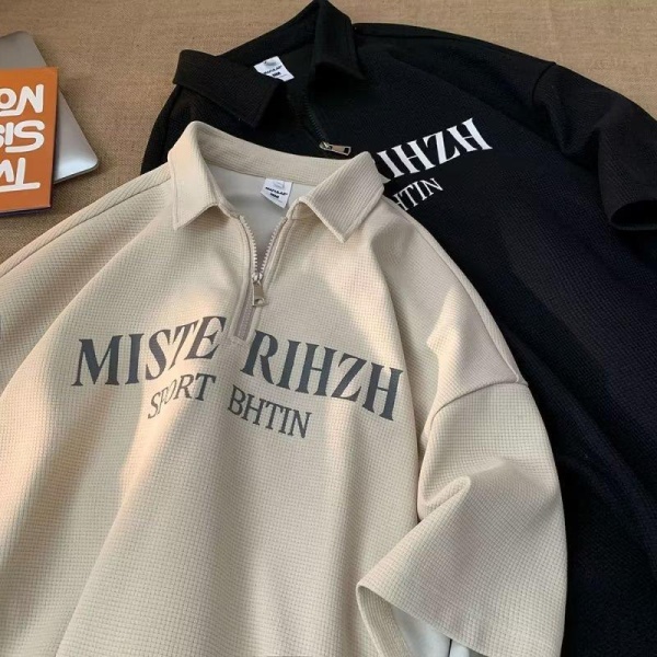 华夫格美式复古翻领t恤短袖男Polo衫重磅潮牌ins潮流体恤半袖夏装