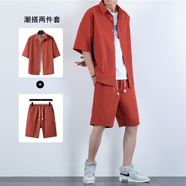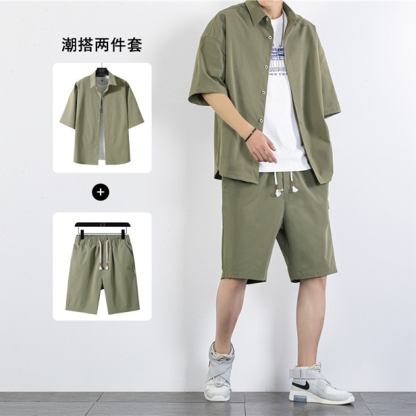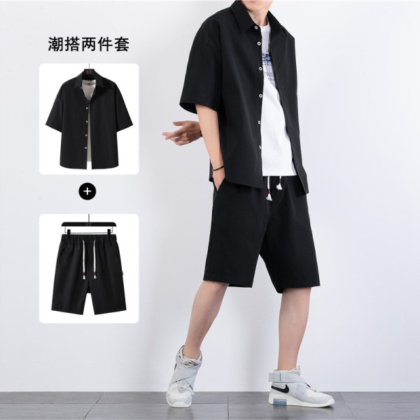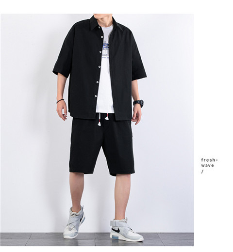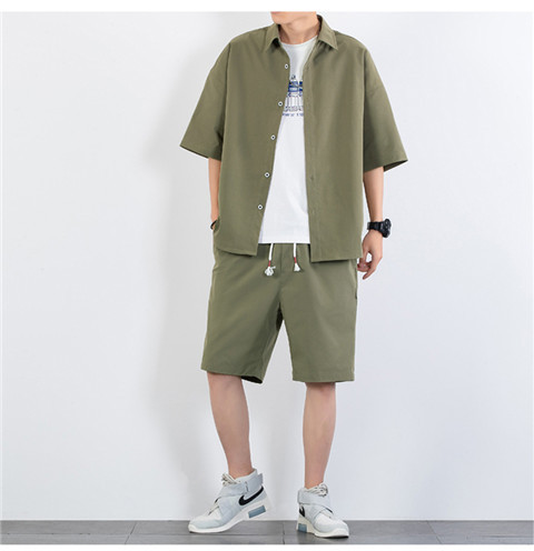 2023新款男士夏季时尚修身港风休闲短袖短裤套装运动两件套套装
