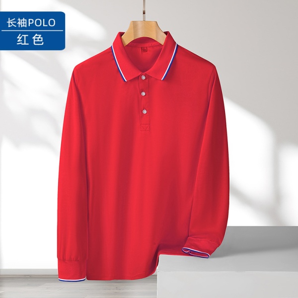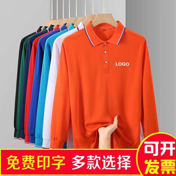 长袖翻领Polo衫定制印logo企业工装学生团建文化衫餐饮工作服刺绣