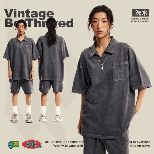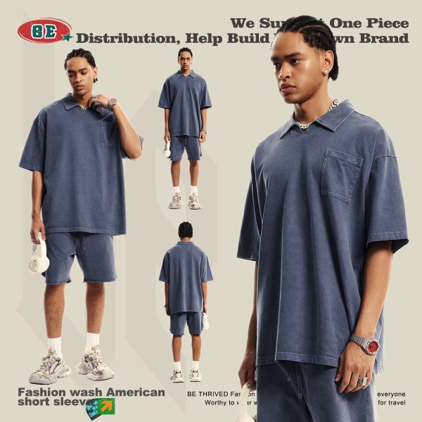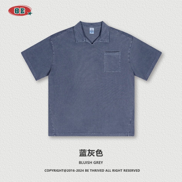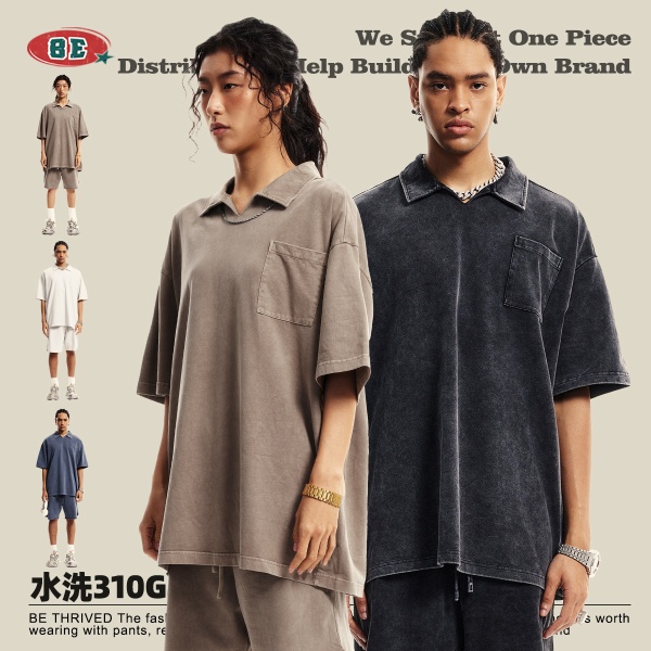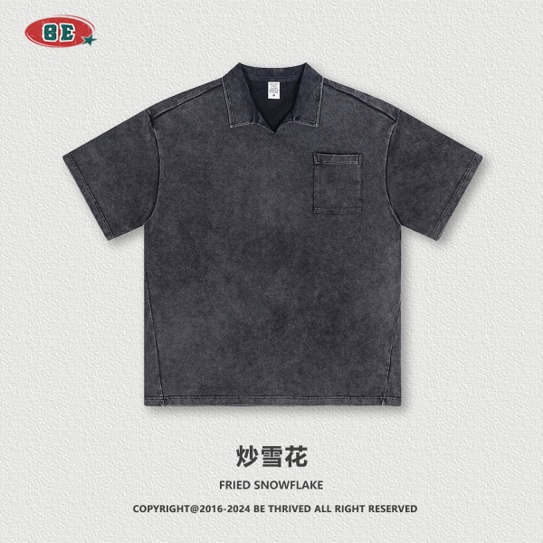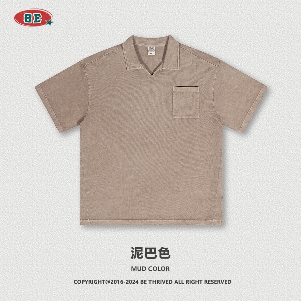BE男装2025春夏水洗翻领短恤青少年宽松型度假风古巴领短恤t恤男