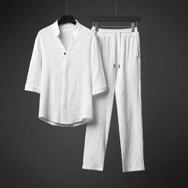 商品属性 [上市年份/季节] 2024年夏季 [上衣款式] T恤 [上衣袖长] 短袖 [主要下游平台] 亚马逊,速卖通 [主要销售地区] 东南亚 [主面料成分] 聚乙烯醇纤维(维纶) [主面料成分的含量] 90%(含)-95%(含) [厚薄] 普通 [原创设计货源] 否 [库存类型] 整单 [是否跨境出口专供货源] 是 [是否连帽] 不连帽 [有无质检报告] 否 [淘货类别] 青春流行(18-24岁) [裤长] 长裤 [货源类别] 现货 [适合季节] 夏季 [适用场景] 休闲 [面料名称] 棉类混纺 [风格] 轻熟休闲