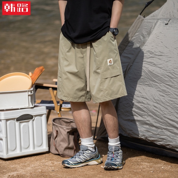 韩路男装 层次活页工装腰带短裤男夏季新款复古宽松五分休闲裤子