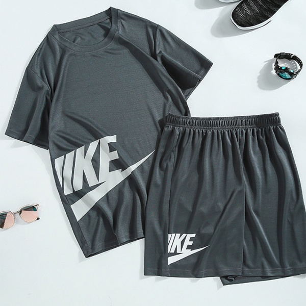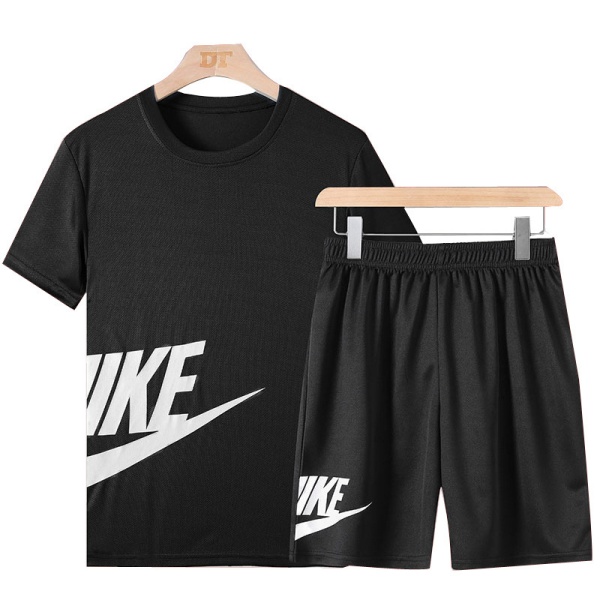 夏季跑步运动服套装男士宽松速干短袖短裤休闲套装潮大码外贸套装