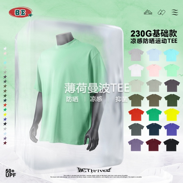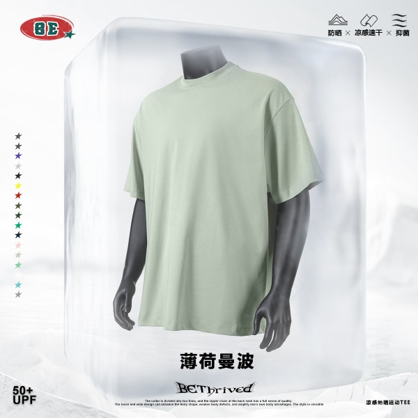 BE男装|2025春夏薄荷曼波t恤青少年宽松男式t恤sorona凉感t恤男