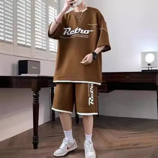 夏季新款休闲运动套装男生港风宽松搭配潮流帅气短袖短裤两件套装