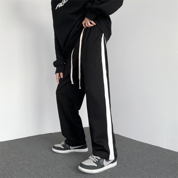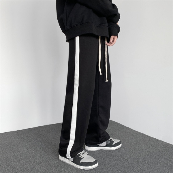 商品属性 [上市年份/季节] 2023年秋季 [主面料成分] 聚酯纤维(涤纶) [主面料成分的含量] 95 [厚薄] 普通 [原创设计货源] 是 [图案] 纯色 [工艺] 免烫处理 [库存类型] 整单 [弹力] 微弹 [是否库存] 是 [是否有腰带] 无腰带 [有无质检报告] 否 [材质功能] 其他 [款式] 基本款 [款式细节] 拼色 [淘货类别] 青春流行(18-40岁) [类别] 运动休闲裤 [腰型] 中腰 [裤型] 宽松型 [裤脚口款式] 直筒 [裤长] 长裤 [裤门襟] 系绳闭襟 [误差范围] 1-3CM [货源类别] 现货 [适合人群] 青年 [适合季节] 春秋季 [适用场景] 休闲 [面料名称] 其他 [风格] 港风