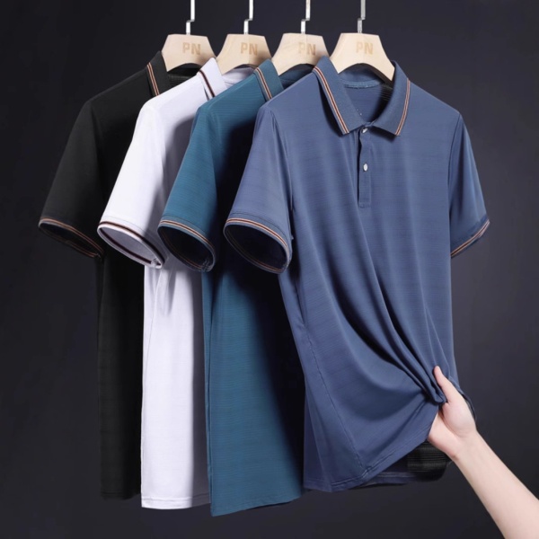 polo衫男装潮牌t恤爸爸装商务绅士冰丝降温T恤中老年休闲薄款男装