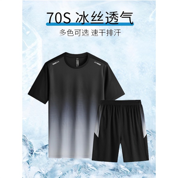 跨境欧美代发运动套装短袖夏男女款情侣健身跑步衣服冰丝速干T恤