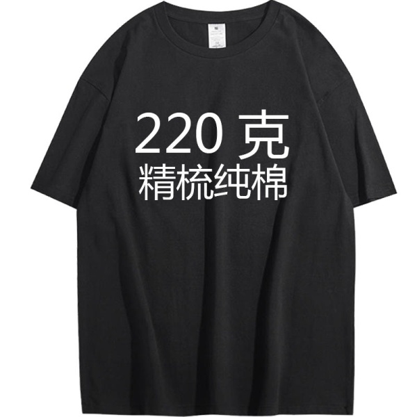 220克精梳纯棉圆领T恤工作服团体服班服文化衫公司聚会刺绣印LOGO
