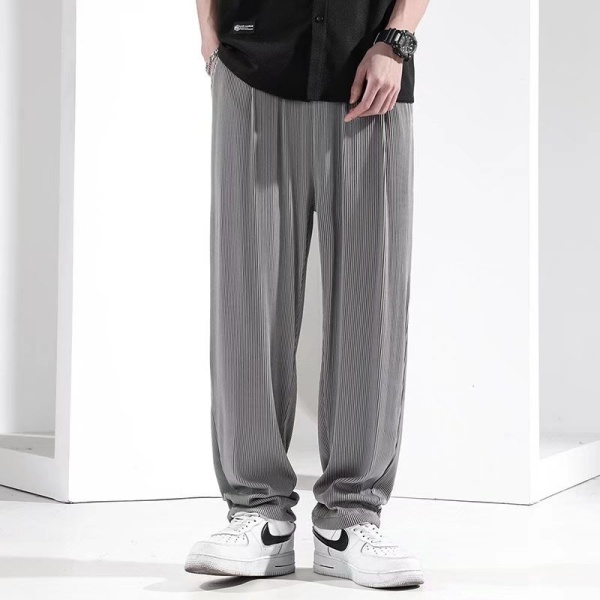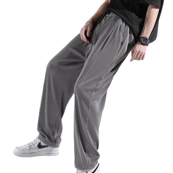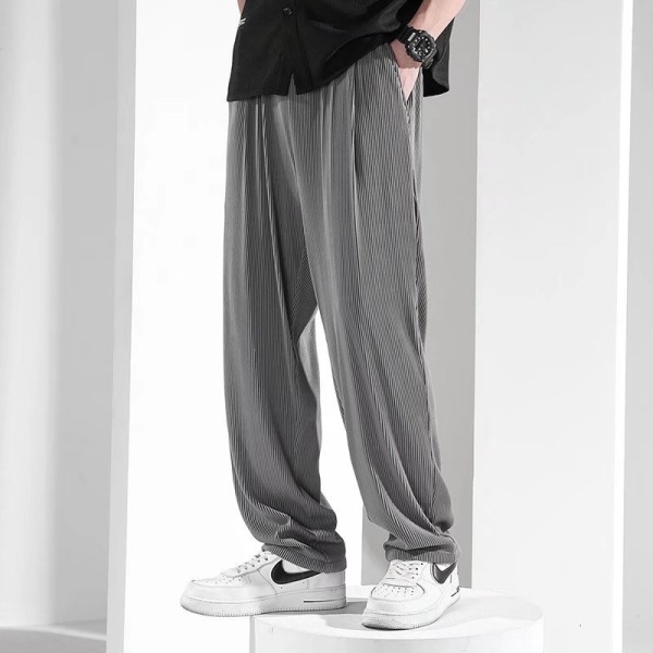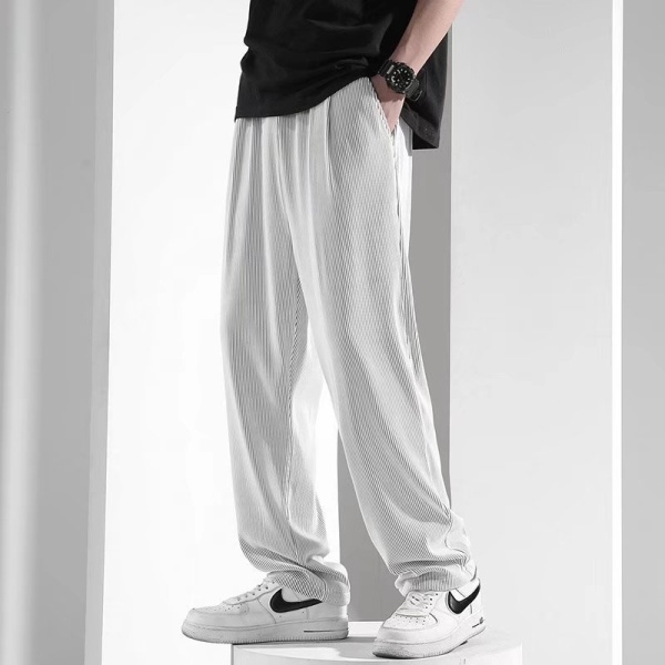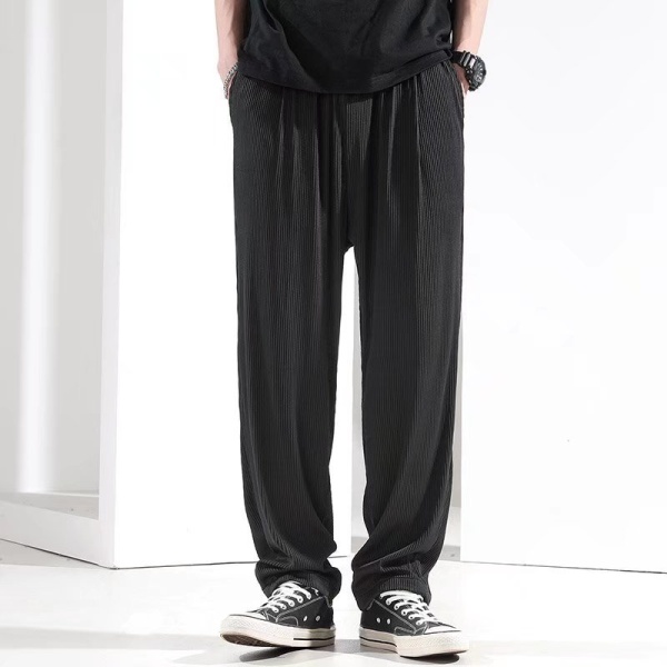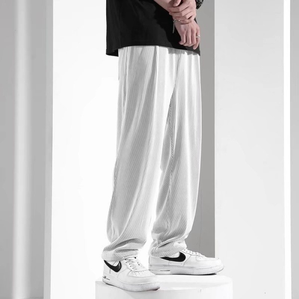 夏季薄款冰丝裤男款宽松大码垂感空调运动休闲裤子潮流阔腿裤代发
