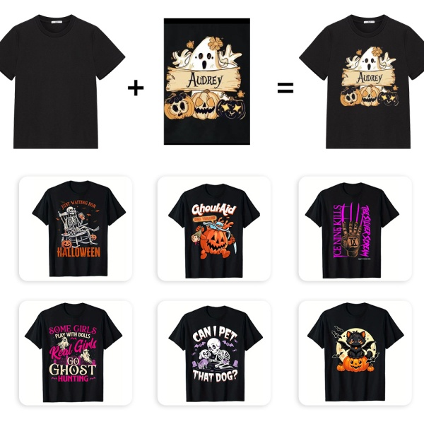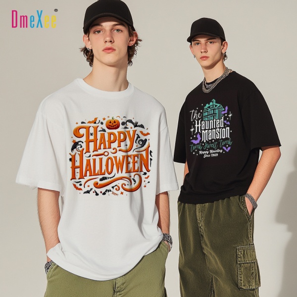 跨境新款万圣节图案男士上衣宽松圆领时尚男青少年潮男装短袖t恤