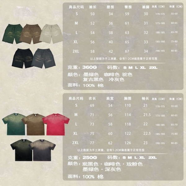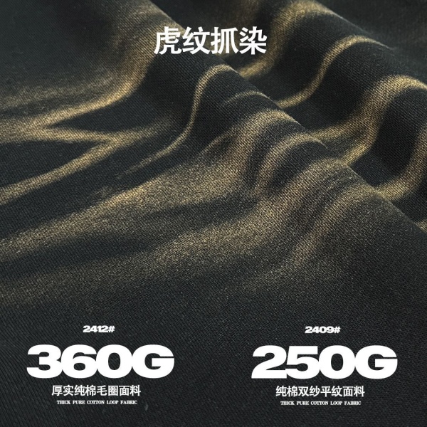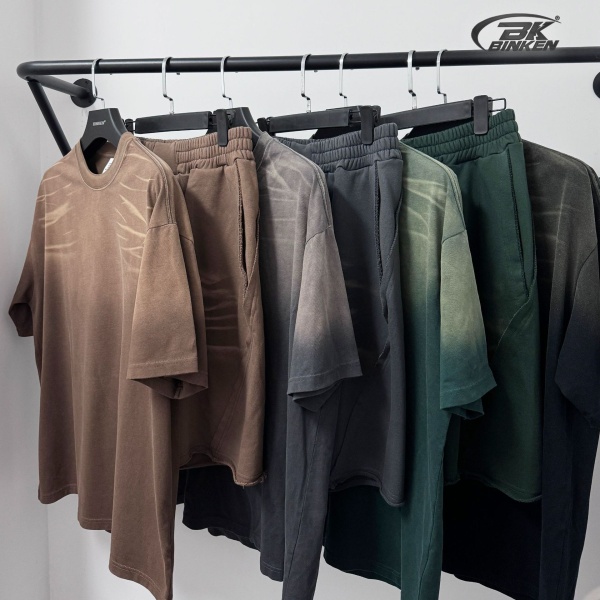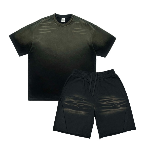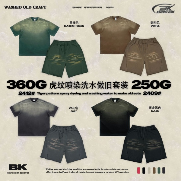 BK男装夏季250G虎纹喷染宽松短袖男美式高街做旧洗水短袖短裤套装