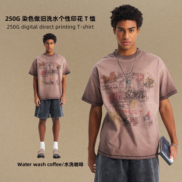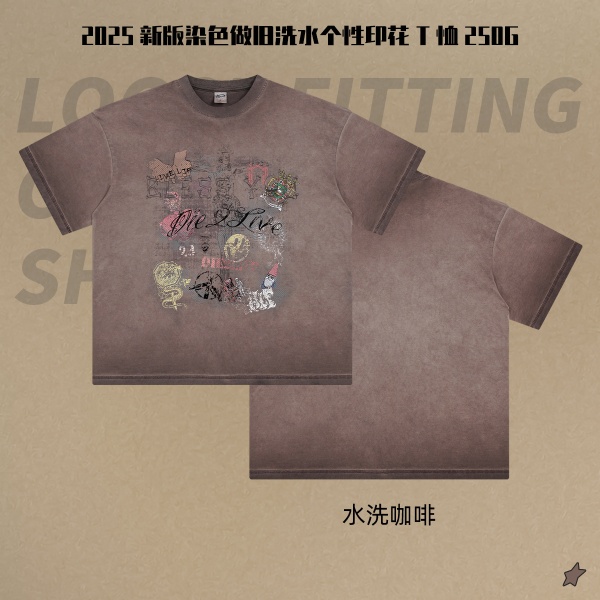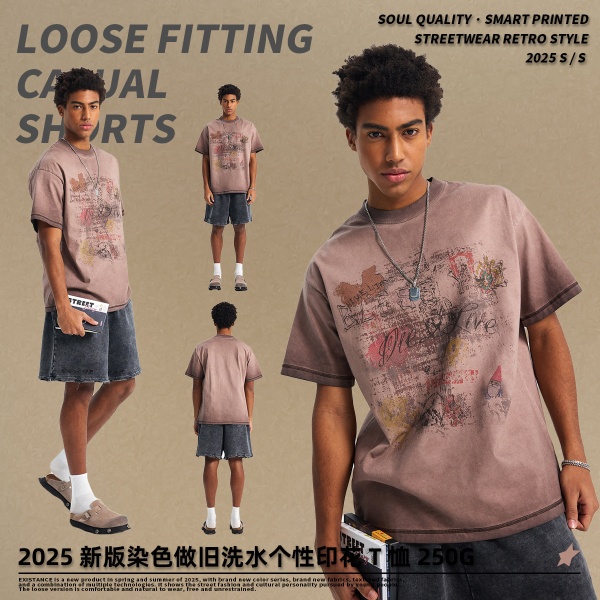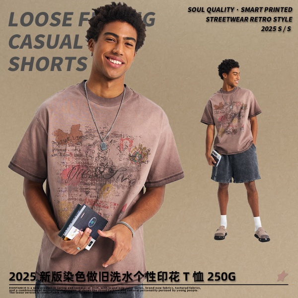 链潮男装|2025复古做旧印花短袖T恤潮牌宽松纯棉重磅短袖