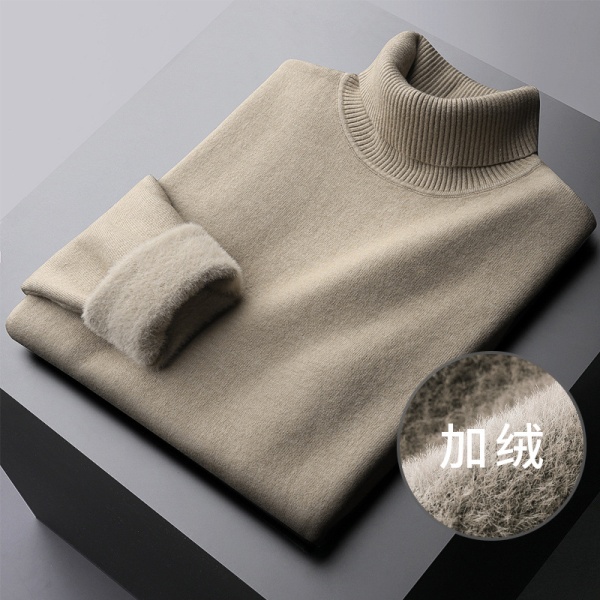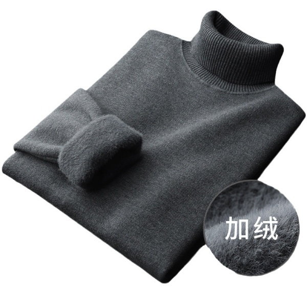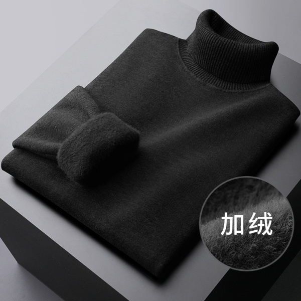 加绒一体绒男士打底衫高领毛衣男秋冬修身休闲翻领加厚保暖针织衫