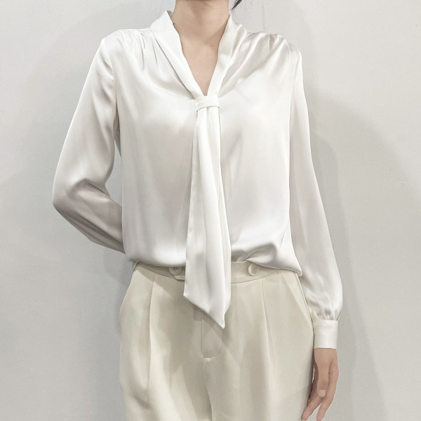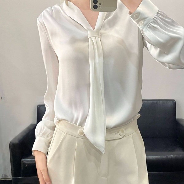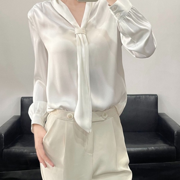 2023夏季新款飘带领职业装通勤百搭女士衬衫