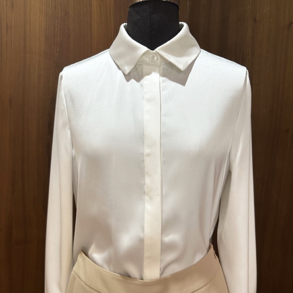 2023秋季新款缎面仿醋酸气质通勤内搭上衣翻领垂感长袖女式衬衫