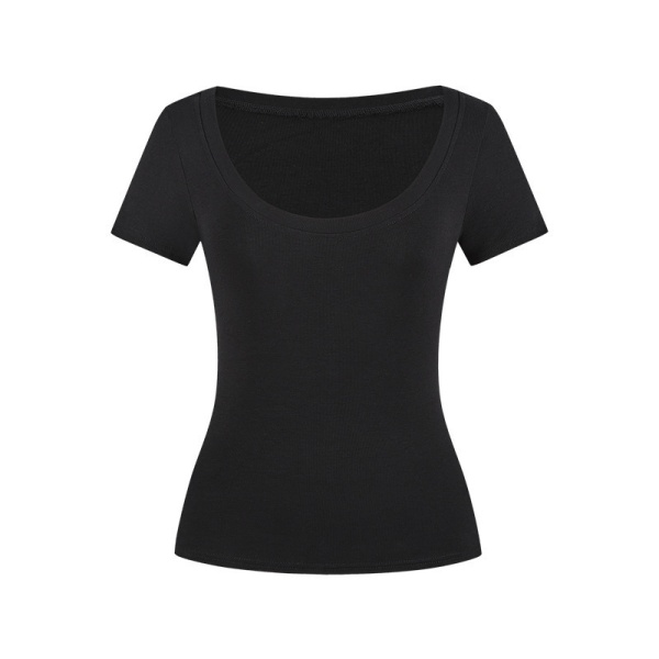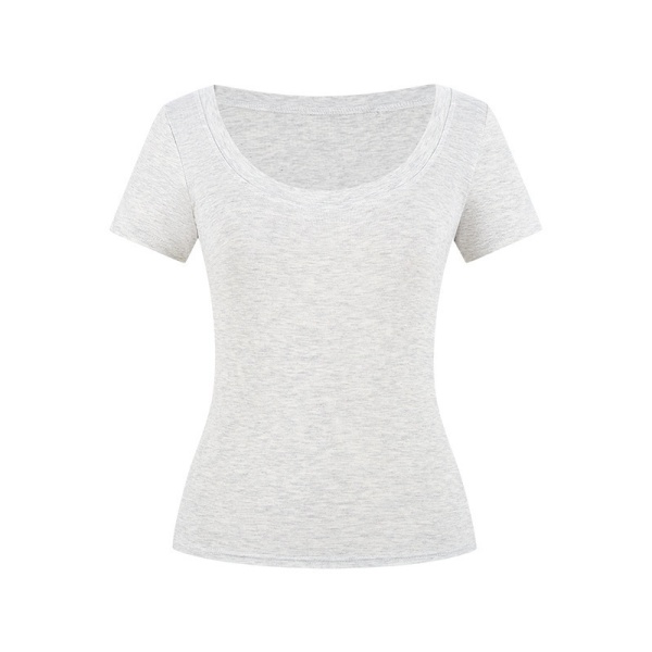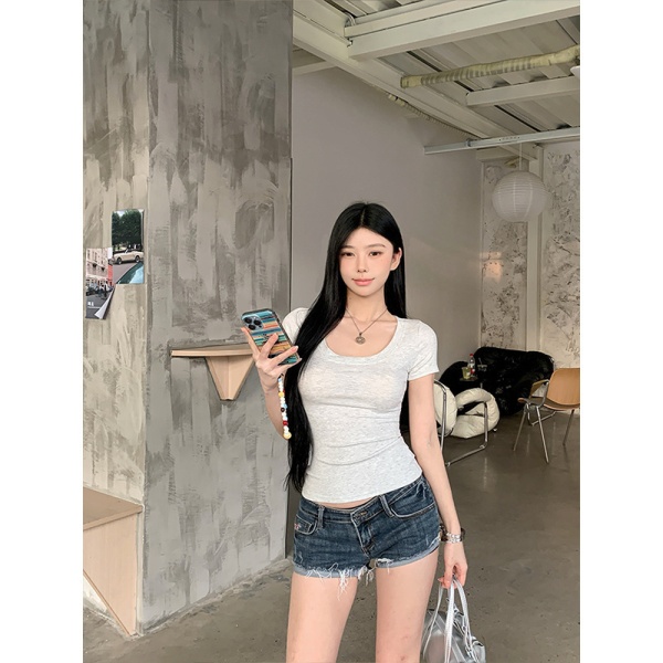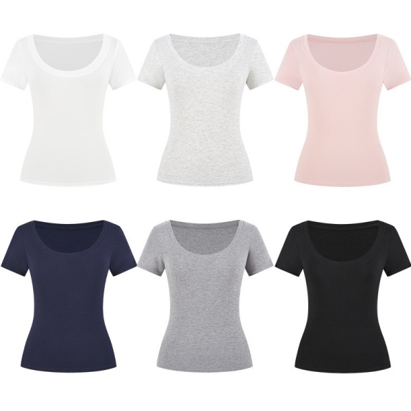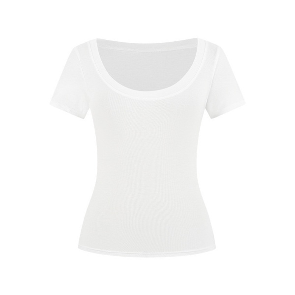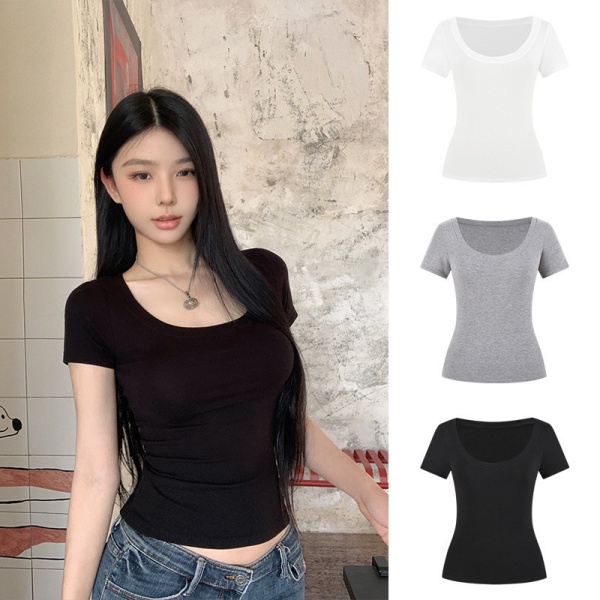 纯棉简约u领短袖正肩T恤女装夏季2025新款修身显瘦打底衫气质上衣