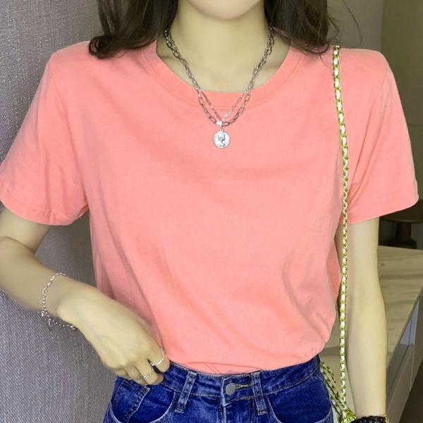 商品属性 [上市年份/季节] 2025夏季 [主面料成分] 棉 [主面料成分2] 棉 [主面料成分2含量] 95%及以上 [主面料成分含量] 95%及以上 [图案] 纯色 [工艺] 免烫处理 [是否跨境货源] 否 [款式] 套头 [流行元素] 纯色 [版型] 修身型 [衣长] 普通款(50cm<衣长≤65cm) [袖型] 常规袖 [袖长] 短袖 [面料名称] 棉 [领型] 圆领 [风格] 简约风 [风格类型] 日韩休闲