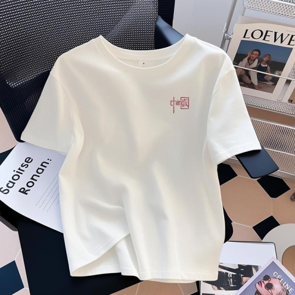 商品属性 [上市年份/季节] 2025夏季 [主要下游销售地区1] 欧美 [主要下游销售地区2] 中东 [主面料成分] 棉 [主面料成分2] 棉 [主面料成分含量] 95%及以上 [图案] 纯色 印花 [工艺] 印花 [是否跨境货源] 是 [款式] 套头 [流行元素] 印花 [版型] 常规 [衣长] 普通款(50cm<衣长≤65cm) [袖型] 短袖 [袖长] 短袖 [跨境风格类型] 气质优雅 [面料名称] 棉 [领型] 圆领 [风格] 御姐风 [风格类型] 私服名媛