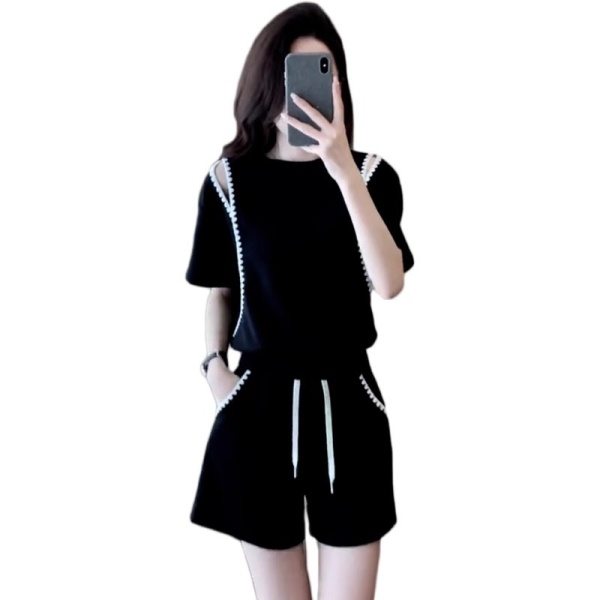商品属性 [上市年份/季节] 2024年夏季 [主面料成分] 涤纶(聚酯纤维) [主面料成分含量] 90%(含)-95%(不含) [图案] 其他 [套装款式] 裤套装 [工艺] 镂空 [是否跨境货源] 否 [流行元素] 其他 [袖型] 常规袖 [袖长] 三分袖 [裤长] 五分裤 [面料名称] 涤纶 [风格] 通勤风 [风格类型] 气质通勤