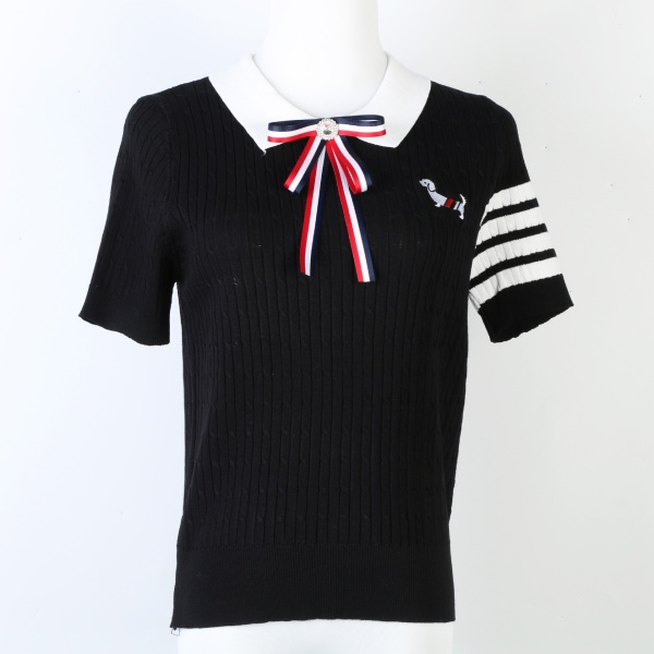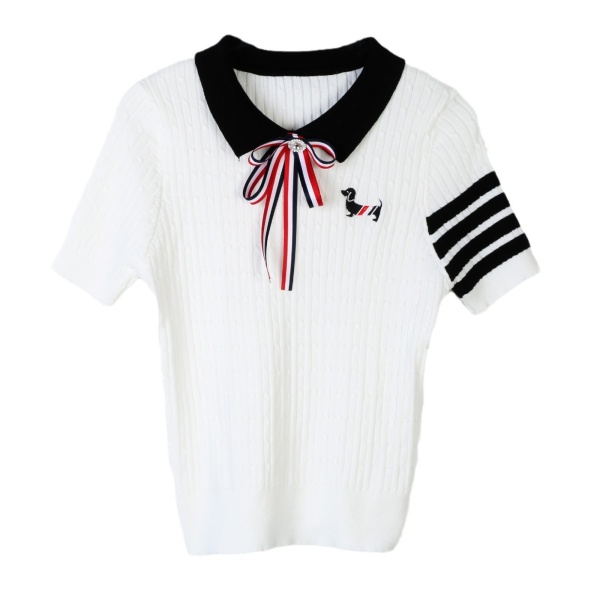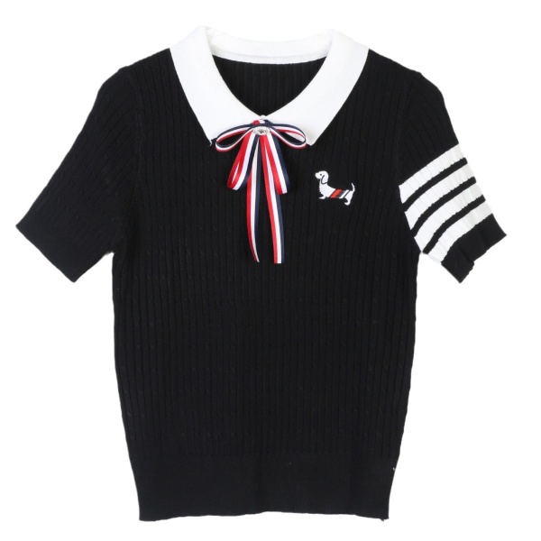 tb针织衫女短袖蝴蝶结刺绣小狗针织衫简约四条杠POLO领tb针织衫潮