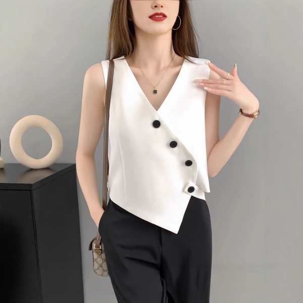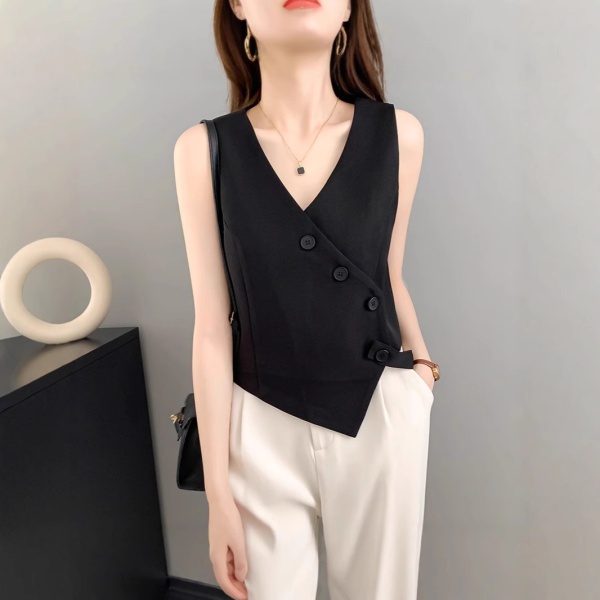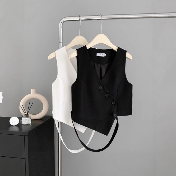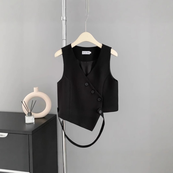 设计感短款小众黑色西装马甲背心女夏季外穿V领显瘦叠穿上衣外搭