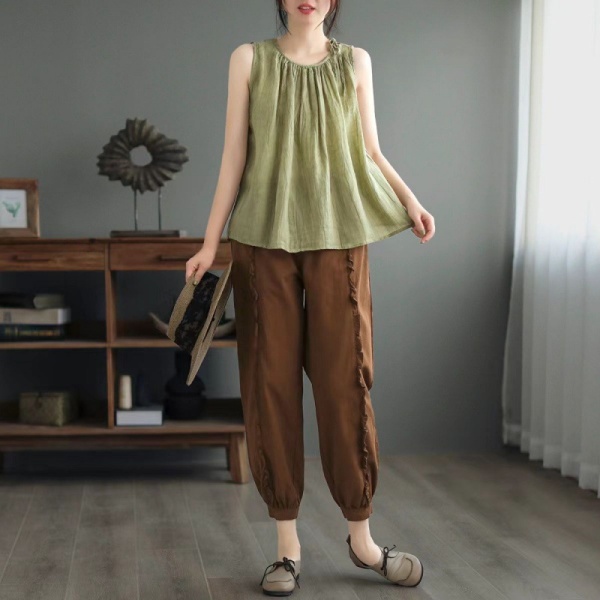 商品属性 [上市年份/季节] 2023年夏季 [主面料成分] 棉 [主面料成分2] 棉/棉 [主面料成分2含量] 90%(含)-95%(不含) [主面料成分含量] 95%及以上 [图案] 纯色 [弹力] 无弹 [是否跨境货源] 否 [款式] 肩带型 [流行元素] 褶皱 [版型] 宽松型 [肩带样式] 系带式肩带,双根式 [衣长] 普通款(50cm<衣长≤65cm) [面料名称] 棉 [风格] 通勤风 [风格类型] 气质通勤