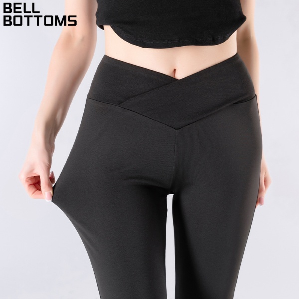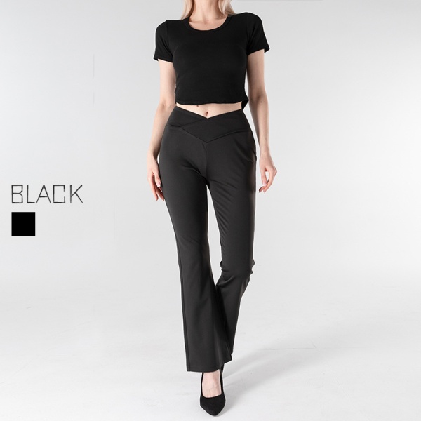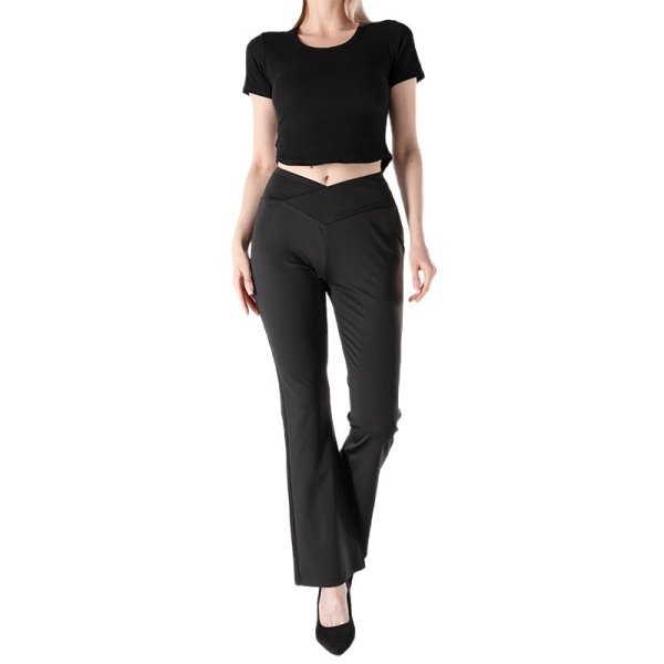 欧美跨境新款微喇裤女 提臀收腰宽松长裤V型腰交叉通勤休闲裤现货