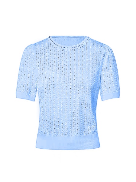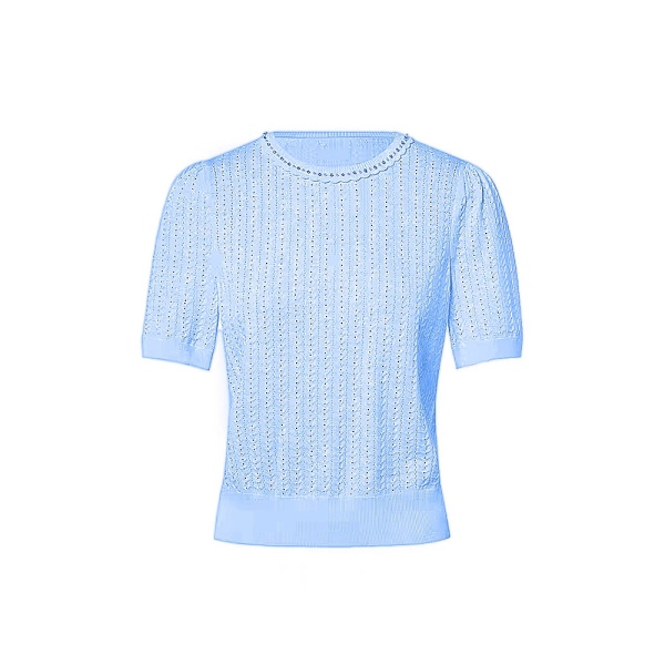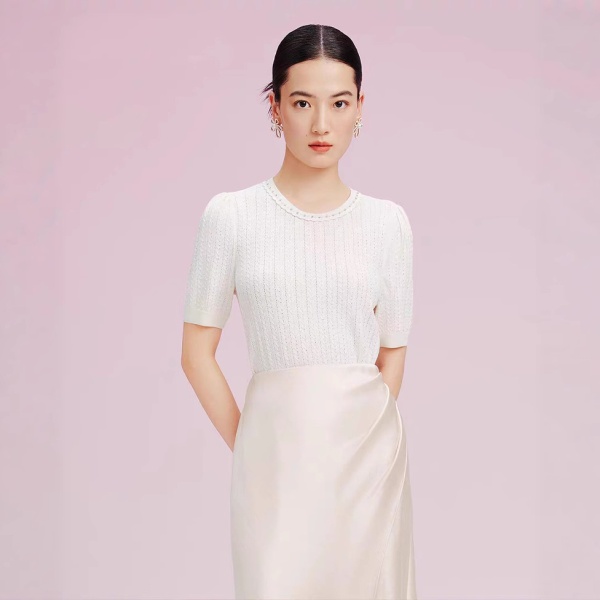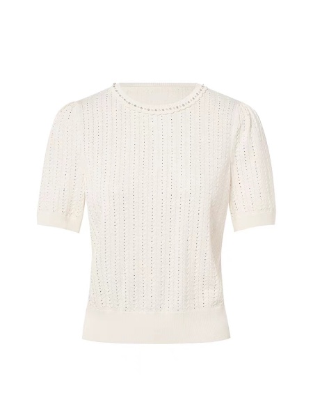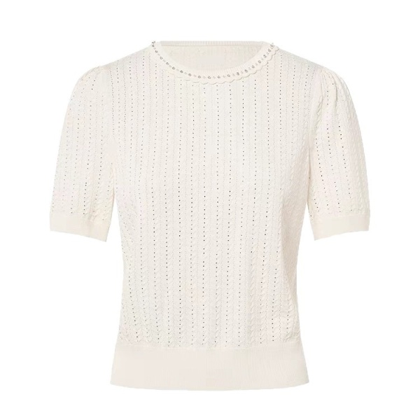 拉珂D高端女装商场同款法式针织T恤高级感夏季新款圆领钉珠针织衫