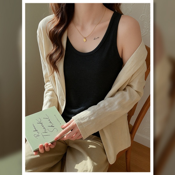 商品属性 [上市年份/季节] 2025年春季 [主面料成分] 棉 [主面料成分2] 聚酯纤维 [主面料成分2含量] 30%(含)-50%(不含) [主面料成分含量] 50%(含)-70%(不含) [图案] 纯色 [弹力] 微弹 [是否跨境货源] 否 [款式] 套头 [流行元素] 冰激淋色 [版型] 宽松型 [肩带样式] 单根式 [衣长] 普通款(50cm<衣长≤65cm) [面料名称] 棉 [风格] 通勤风 [风格类型] 气质通勤