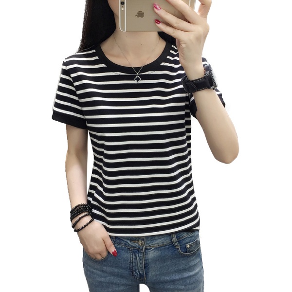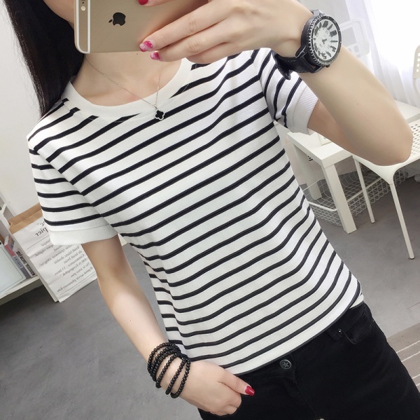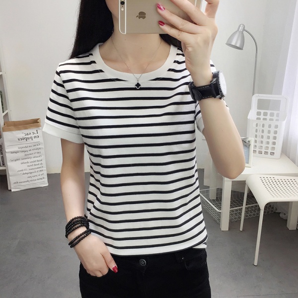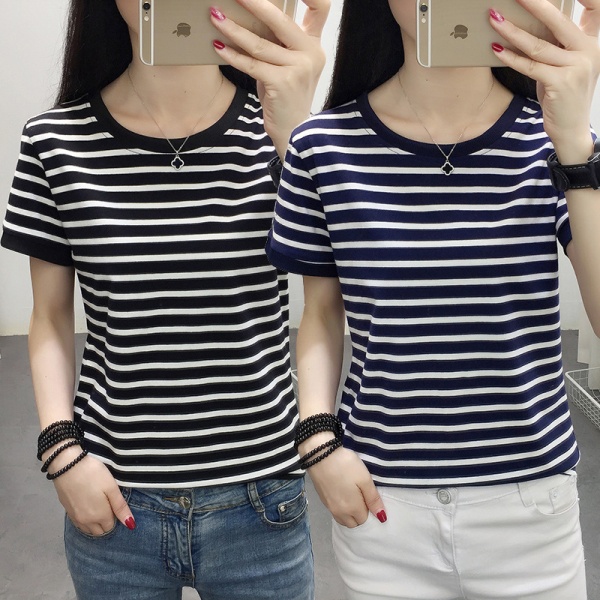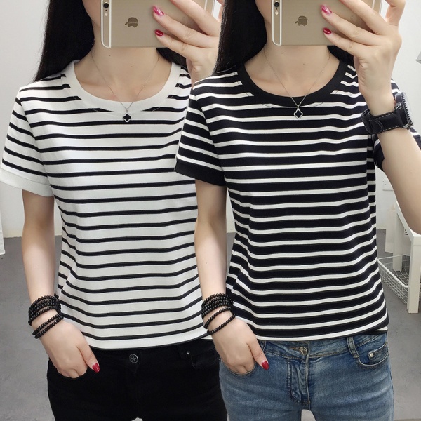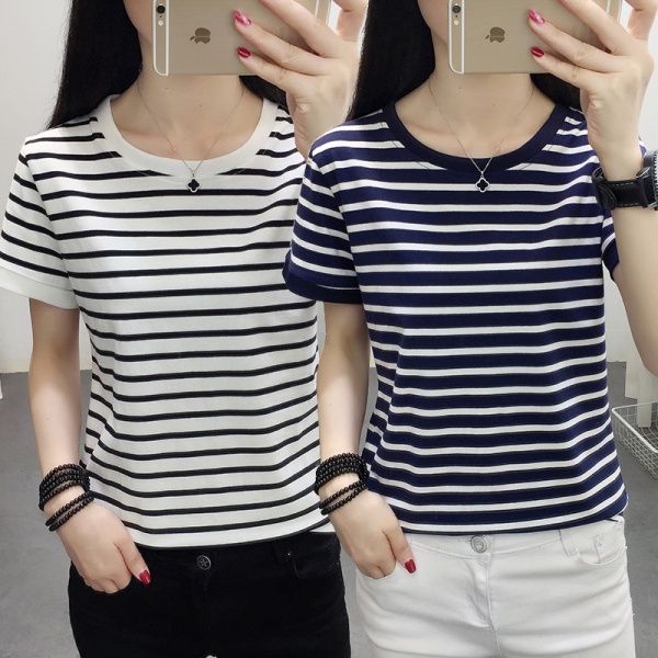 商品属性 [上市年份/季节] 2024年夏季 [主要下游销售地区1] 欧美 [主要下游销售地区2] 东南亚 [主面料成分] 棉 [主面料成分2] 棉 [主面料成分2含量] 90%(不含)-95%(含) [主面料成分含量] 90%(不含)-95%(含) [图案] 条纹 [工艺] 色织 [是否跨境货源] 是 [款式] 套头 [流行元素] 其他 [版型] 宽松型 [衣长] 普通款(50cm<衣长≤65cm) [袖型] 常规袖 [袖长] 短袖 [跨境风格类型] 气质优雅 [面料名称] 棉 [领型] 圆领 [风格] 通勤风 [风格类型] 气质通勤
