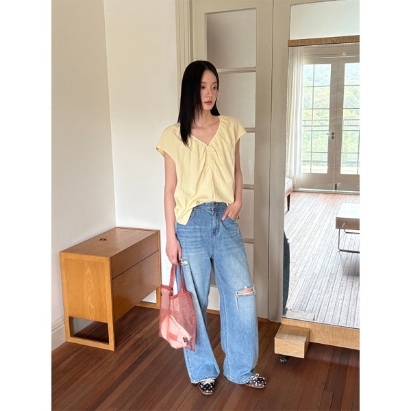 衣夫 2025夏季女装新款韩版复古破洞牛仔长裤CW23525
