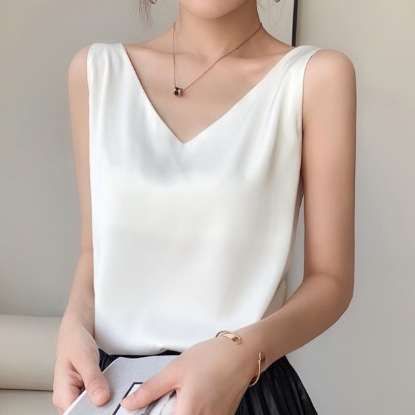 商品属性 [上市年份/季节] 2024年夏季 [主面料成分] 聚酯纤维 [主面料成分含量] 30%以下 [图案] 纯色 [弹力] 高弹 [是否跨境货源] 否 [款式] 吊带型 [流行元素] 蝴蝶结 [版型] 宽松型 [衣长] 普通款(50cm<衣长≤65cm) [面料名称] 其他 [风格] 少女风 [风格类型] 清新甜美