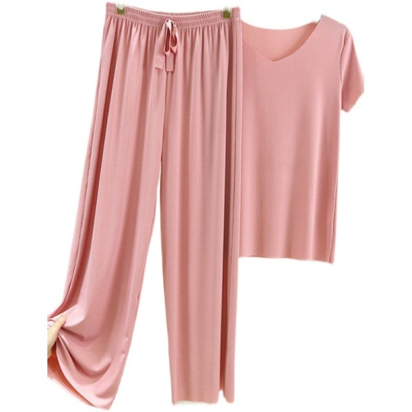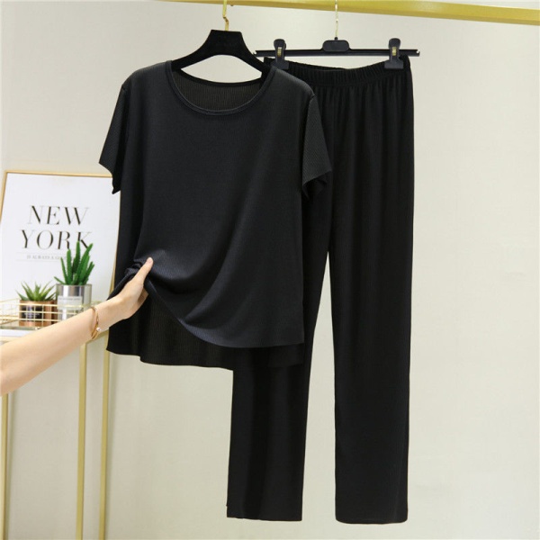 时尚冰丝套装女士夏季薄款新款气质运动休闲阔腿裤短袖两件套洋气