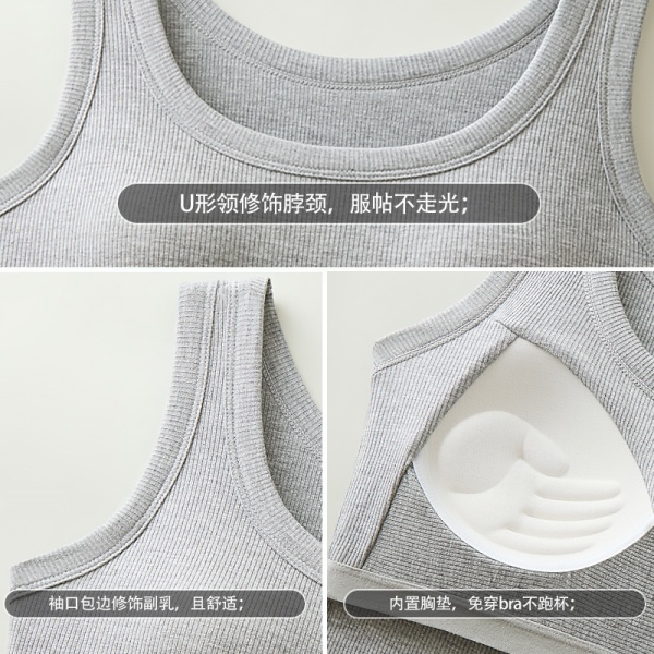 商品属性 [上市年份/季节] 2025年春季 [主面料成分] 粘胶纤维 [主面料成分含量] 90%(含)-95%(不含) [图案] 纯色 [弹力] 中弹 [是否跨境货源] 否 [款式] 套头 [流行元素] 螺纹 [版型] 修身型 [肩带样式] 不可拆卸 [衣长] 普通款(50cm<衣长≤65cm) [面料名称] 粘胶纤维 [风格] 简约风 [风格类型] 日韩休闲