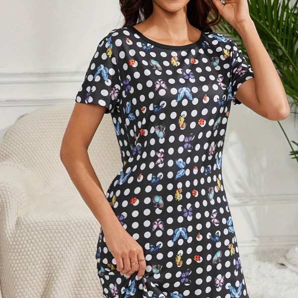 跨境印花短袖连衣裙新款女装夏季欧美亚马逊圆领睡衣家居服可外穿