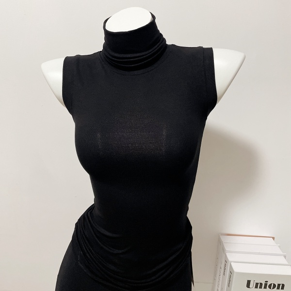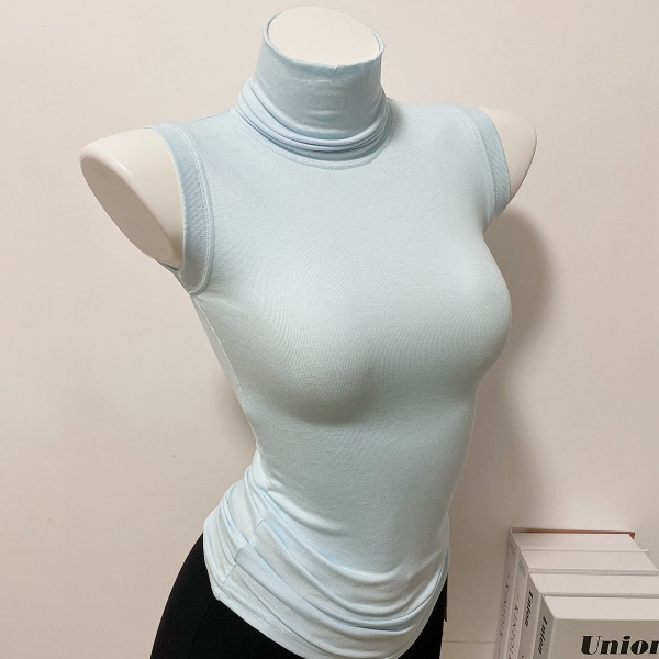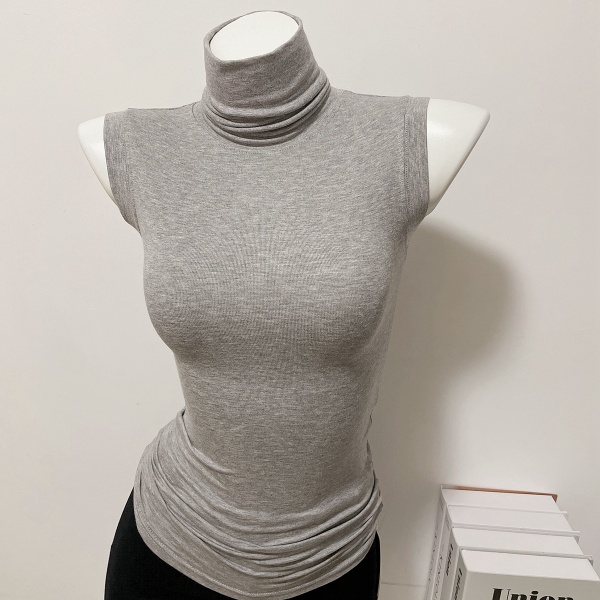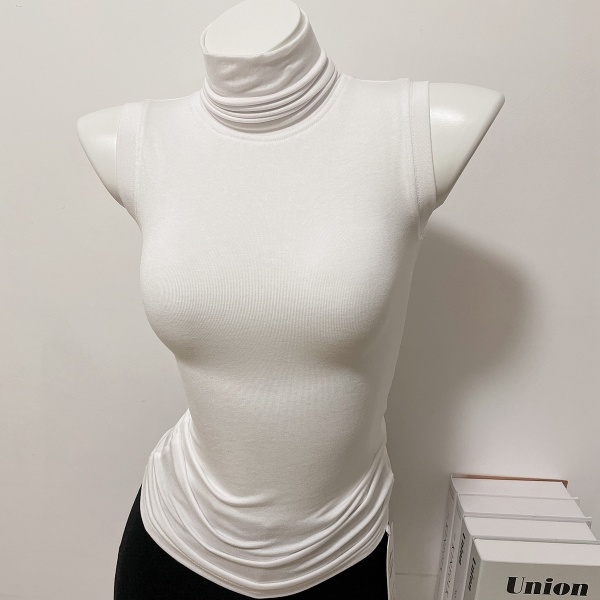 小腰精穿出好身材内搭无袖洋气修身纯色高领气质包身打底上衣t恤