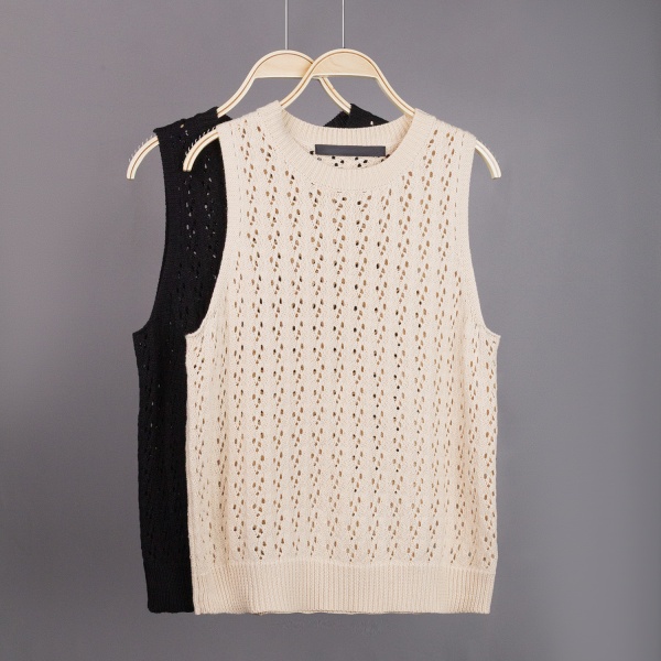 商品属性 [1] Knitwear [2] Sweater [3] women’s sweater [上市年份/季节] 2025年春季 [主要下游销售地区1] 欧美 [主要下游销售地区2] 欧美 [厚薄] 中等 [图案] 针织 [工艺] 针织 [是否跨境货源] 是 [款式] 套头 [流行元素] 欧美 [版型] 常规 [穿着方式] 套头 [组合形式] 单件 [衣长] 短款(40cm<衣长≤50cm) [袖型] 无袖 [袖长] 无袖 [跨境风格类型] 气质优雅 [门襟] 套头 [面料名称] 纯棉 [领型] 圆领 [风格] 名媛风 [风格类型] 私服名媛