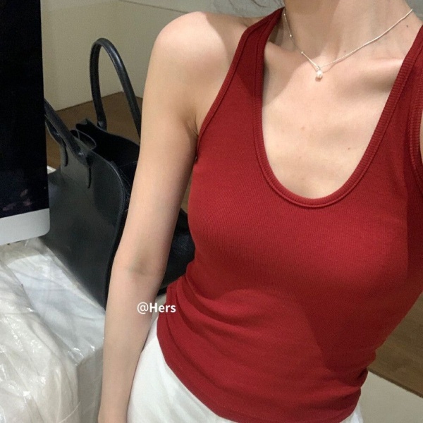 卡逸黛修身柠檬黄挂脖吊带背心女少女可爱显白显瘦上衣内搭外穿女