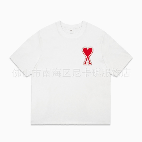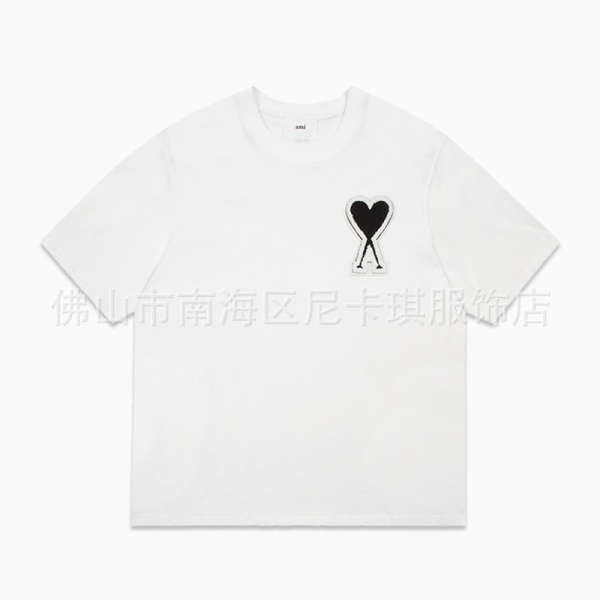 ami短袖2025年春夏季新款刺绣大爱心宽松圆领半袖男女同款t恤上衣