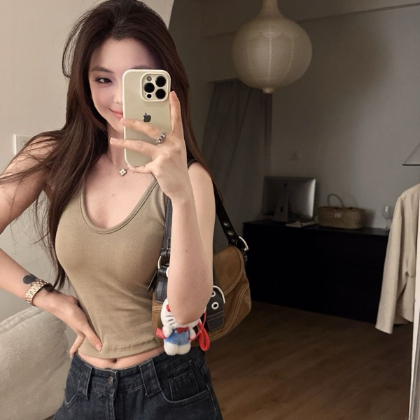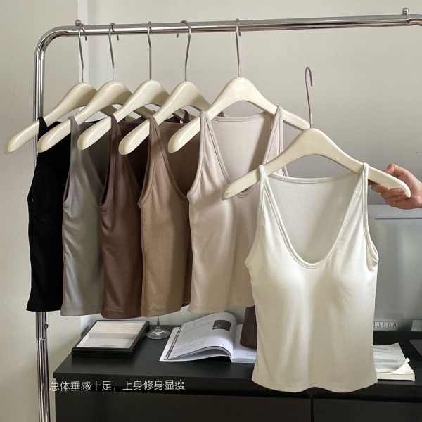 韩社6627#基础款细肩螺纹一体杯背心内搭打底外穿美背显瘦小吊带
